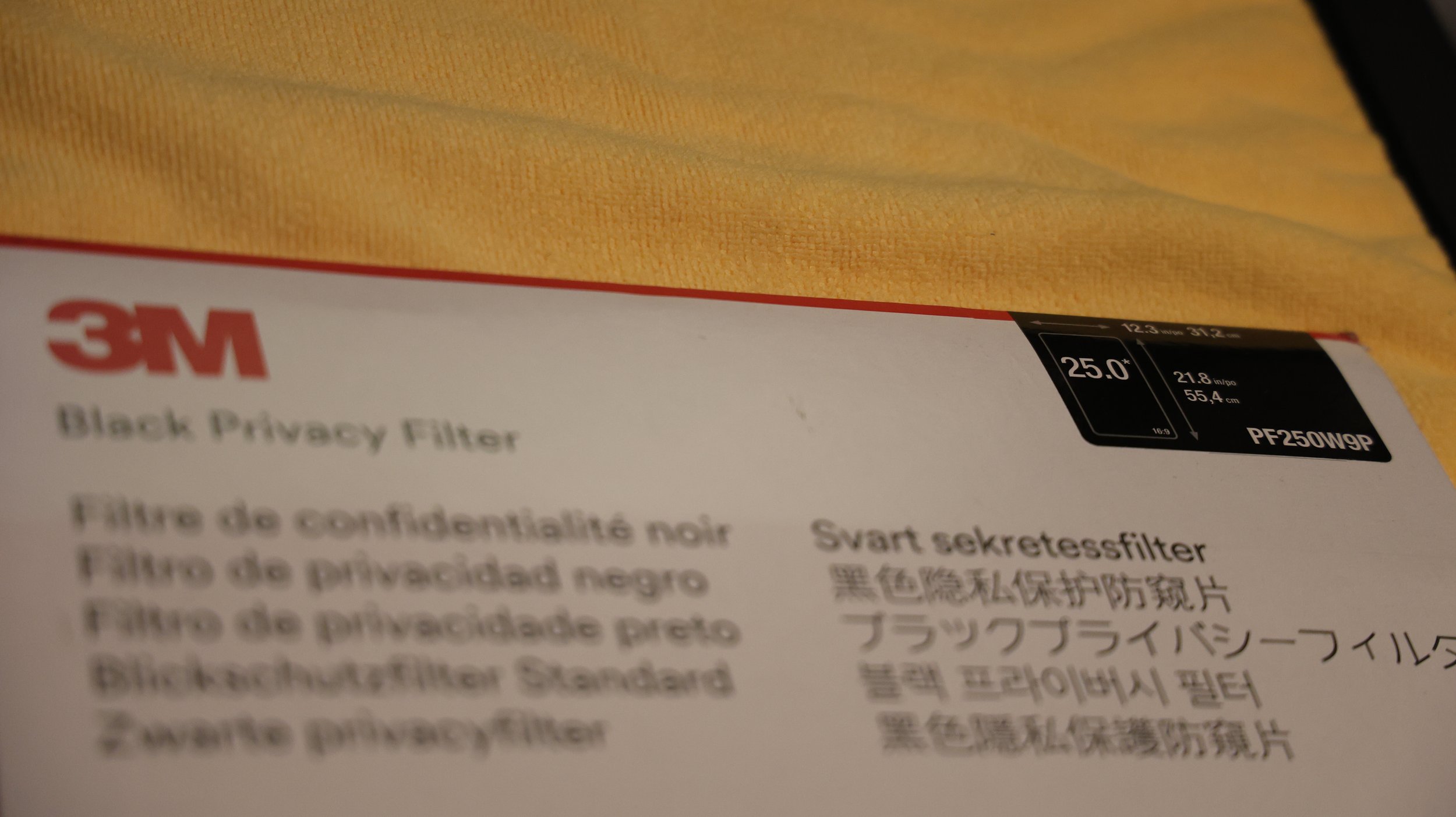 Align the privacy screen on top of the plexiglass with the shiny side facing the front of the screen.